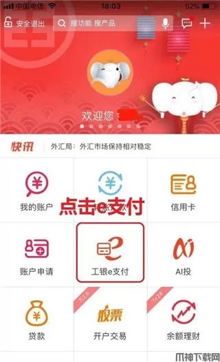 1、首先打开工商银行手机银行,找到工银e支付,并点击