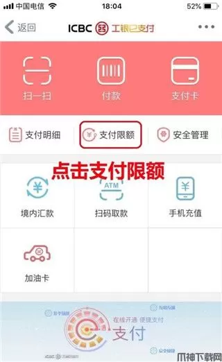 2、在e支付界面找到支付限额,并点击