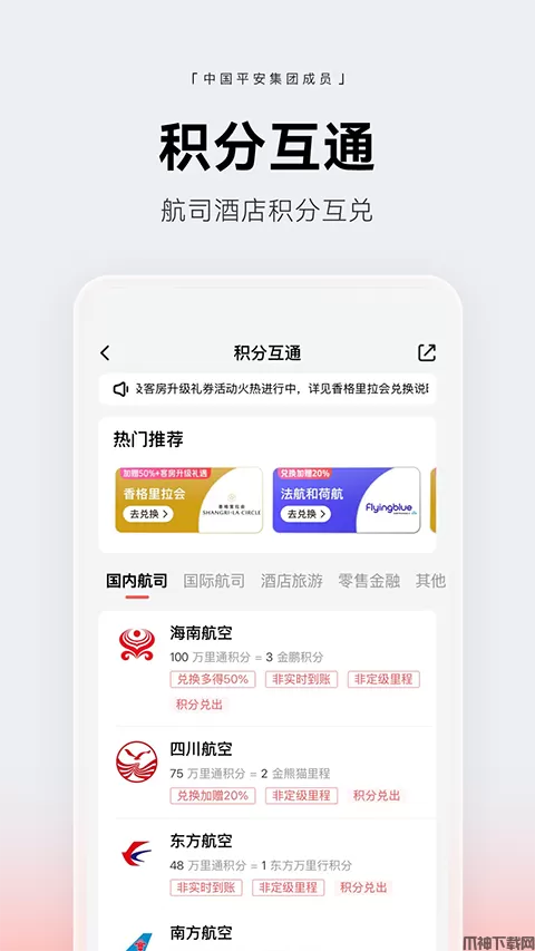 2.集团服务:平安保险、银行等集团专业公司获得的万里通积分均可使用。