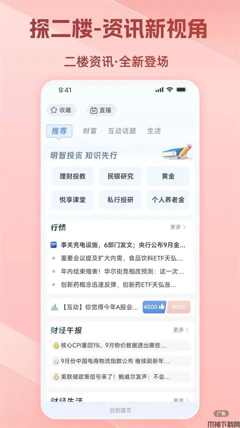 4、探二楼,资讯更全面。手机银行“二楼”提供多元资讯,解读市场趋势,满足不同用户信息需求!