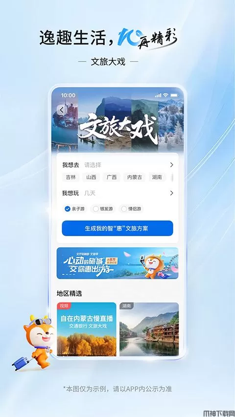 1、文旅大戏:"金融+文旅+消费"一站式出行体验,让您的每段旅程更省心、更省钱、更舒心。