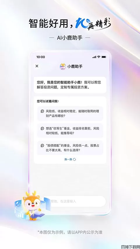 1、AI小鹿助手:您身边的智能财富管家,开口即理财,为您解读信息、精准产品筛选、一句话定制专属方案。