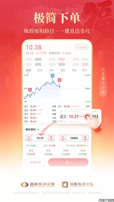 1.简单几步即完成交易,分时图也支持闪电下单;