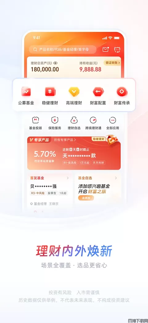 5、理财:提供基金、现金管理、资管、私募等品类丰富的理财产品。