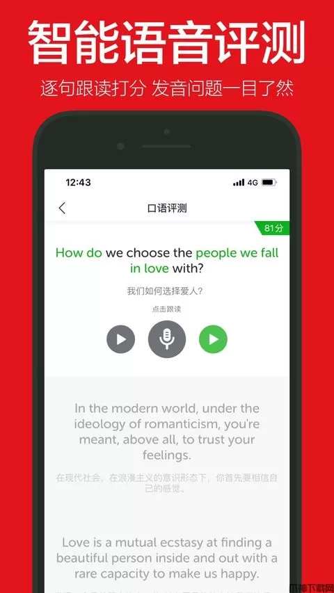 逐句跟读打分,发音问题一目了然