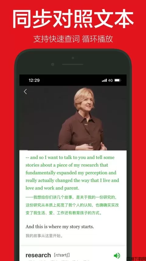 英语演讲ios版是运行苹果手机设备上的一款英语学习应用。英语演讲ios版针对不同英语基础的用户,提供了多种字母设置功能,包括双语、英语、无字幕等等,满足不同用户的使用需求。