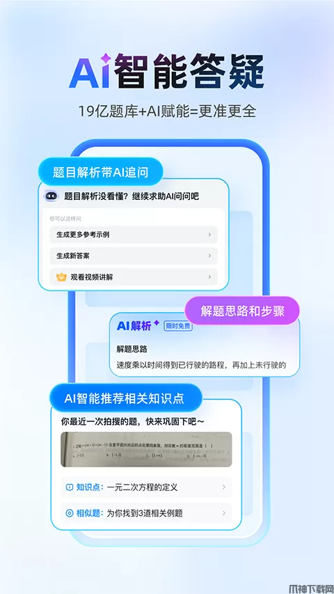 作业帮ios版是一款在线辅导学习软件,为广大莘莘学子提供一个广阔的交流平台,语文、数学什么的再也难不倒你。作业帮衍生于百度旗下的百度知道,答案的专业性毋庸置疑,用户通过作业帮将问题拍照上传,来自全国各地的学霸帮你列出详尽的解答过程和思路,假如依然不明白可以继续追问;除了学霸在线解答外,系统还能够自动识别用户上传的照片并在拥有9500万道题目且经过各大名师校验修改的题库中进行搜索匹配,为用户提供最详尽的解题思路。