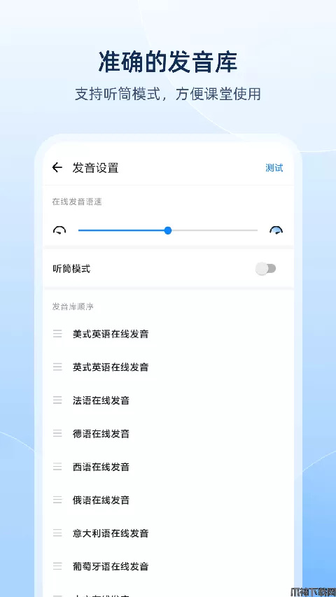 2、纯正发音:美音、英音自由选择,自定发音语速、小语种发音应有尽有。