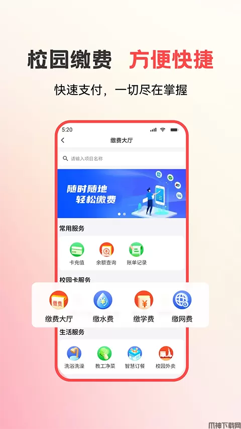 实现在线缴党费、缴学费、电费、水费、住宿费、报名费、补办校园卡、补办学生证等各种缴费项目,学生免跑服务大厅,不再排队,一键搞定在线缴费