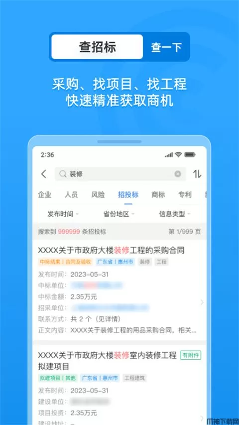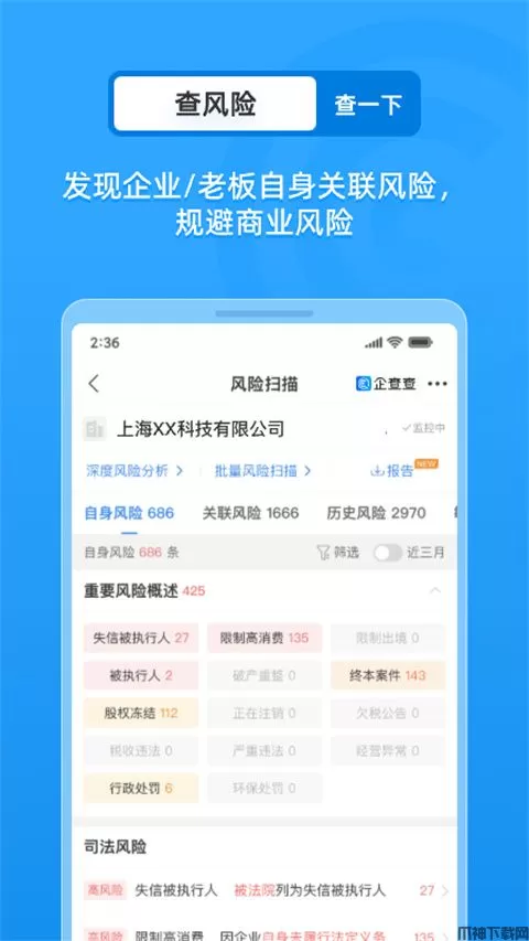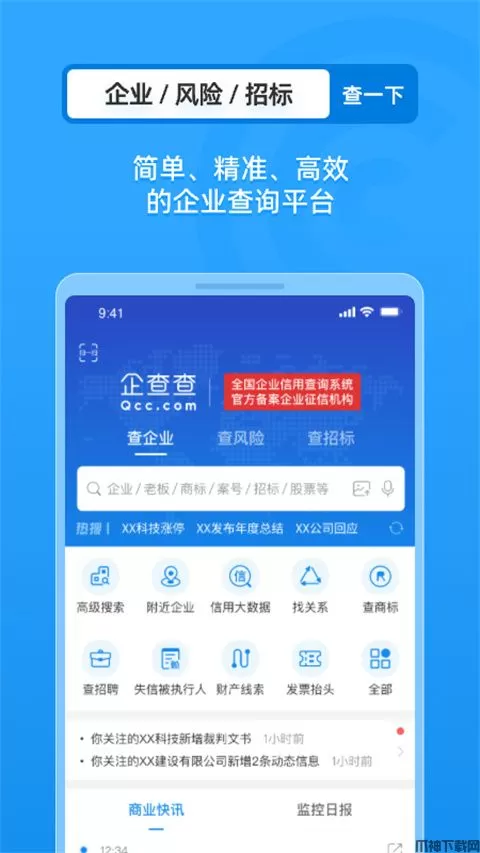企查查app是一款全国企业信用信息查询软件。如果你想查询企业的征信状况,那么使用这款企查查app就再方便不过了。软件能够实时同步更新国内的所有企业工商信息,汇集了目前国内市场中的80个产业链,8000个行业,6000个市场以及8000多万家企业数据,能够充分满足用户的查询需求。软件带来全新的首页,搜索模块还可配置化。在查看企业信息是,用户可以对工商信息、发展历程、投资关系、企业年报、企业图谱以及疑似关系等等多种信息进行分析呈现,让您随时随地掌握企业征信大数据的更新变换。需要的可以下载使用。