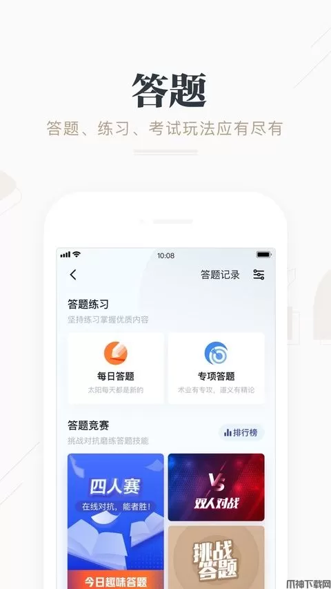 定制提供在线学习答题。文字题、音频题、视频题,每周一答、智能答题、专题考试,让力争上游的您不断攀升新高度。