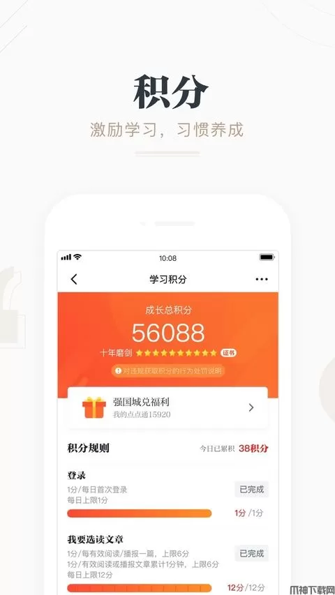 学有所获、学有所用。每日登录、浏览资讯、学习知识、挑战答题、收藏分享,每一种学习行为都会获得积分。