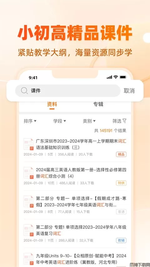 2、全新资源查询维度:名校资源、中考资源、高考资源、教材同步资源、知识点资源应有尽有。