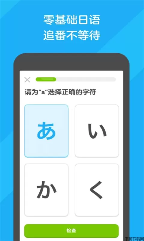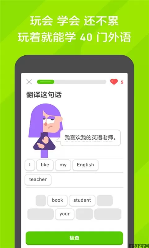 零基础入门,将生活场景分成单元学习,旅行、点菜、聊天、面试...忘掉那些枯燥乏味的死记硬背吧,用游戏闯关的方法,有宝石、红心、王冠,有可可爱爱的动画人物为你加油鼓气,玩儿着玩儿着就学会了。