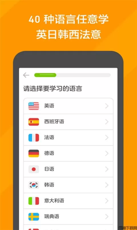 多邻国苹果版是一款语言学习应用,它提供英语、日语、韩语、法语、意大利语、西班牙语等40多种语言,用户可以根据自己的需求进行语言选择并学习。