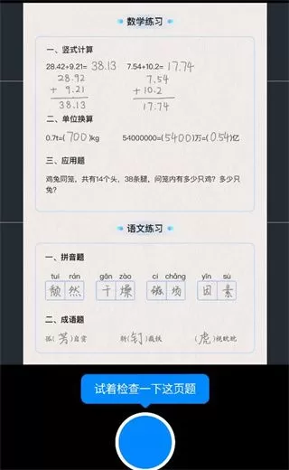 2、打开摄像头,将作业拍下,点击检查。