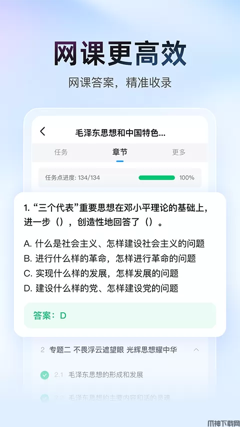大学搜题酱苹果版是一款大学生专属的AI学习助手,现已经接入DeepSeek大模型,助力大学生的学习更上一层楼。为用户提供网课答案、教材习题、答案解析一拍即出,搜题不限次,酱涵盖千所高校期末真题,收录四六级考研考公等各类试题资料。有了搜题酱,大学难题从未如此简单!