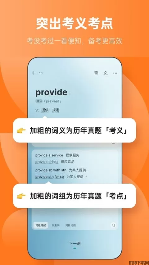 考点:单词 & 真题词组配套学,一次学习,双重回报;