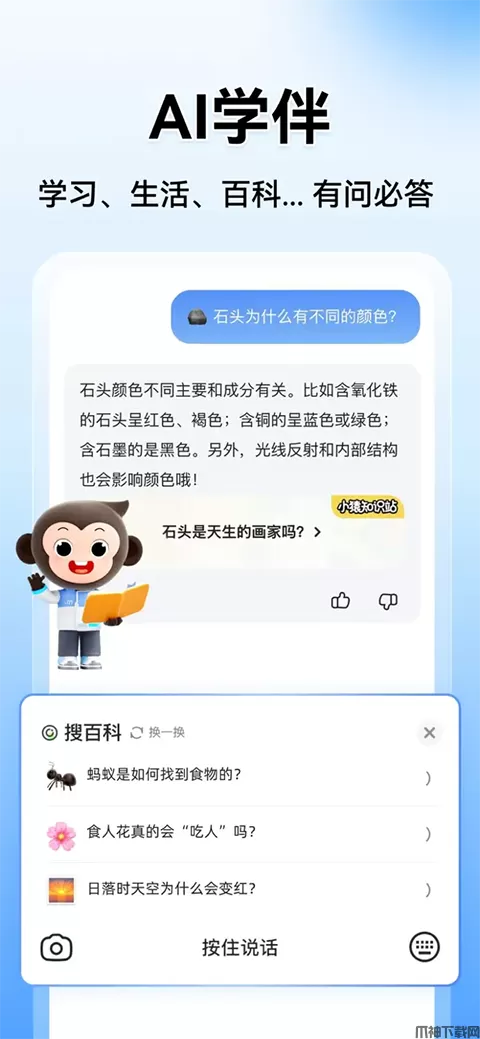 小猿搜题ios版是一款帮你搞定作业难题的神器,有不会做的题目,用小猿搜题拍个照片就能帮你找到题目的解析答案,拥有初中和高中的所有年级与科目,经典题型还有名师视频为你讲解,可以自己选择最适合讲解这些题型的老师,只需要几分钟时间就能让你明白这些经典题型了。家长也可以使用小猿搜题对孩子们进行作业辅导,再也不用特意花钱请家庭教师了。