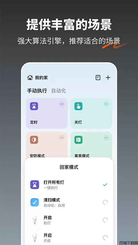 4、智能联动,根据你所在地的温度、位置、时间自动运行智能设备