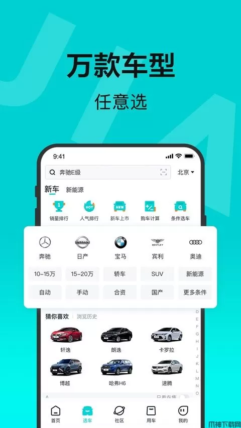 支持按价格、级别、国别等多项条件自定义筛选合适车型,专业的试驾报告、评测