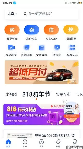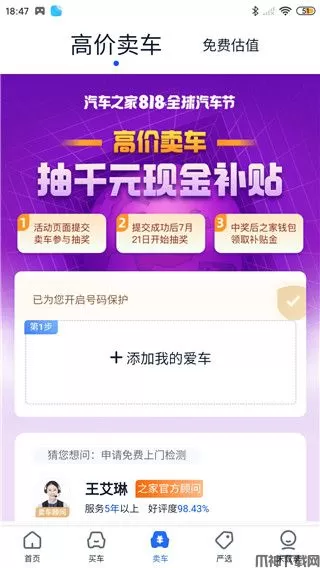 3、点开卖车界面,可以快速卖车和免费估值