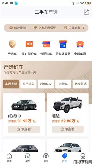 4、打开严选界面,网站为您严选好车