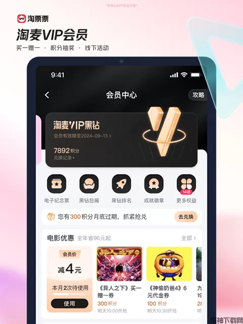 覆盖「电影+演出」更多权益,观影观演优惠券、买一赠一、积分抽奖、丰富线下活动等