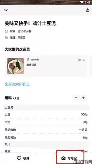3、记录灵感:跟做菜谱可以随时添加文字笔记,或上传图片记录下厨记忆。