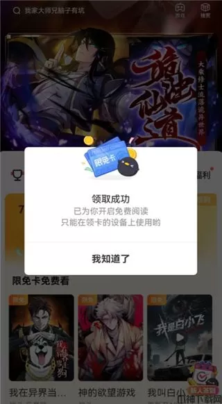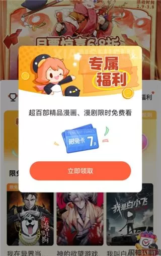 2、进入界面就会自动有一个弹窗免费7天阅读体验卡,点击领取;