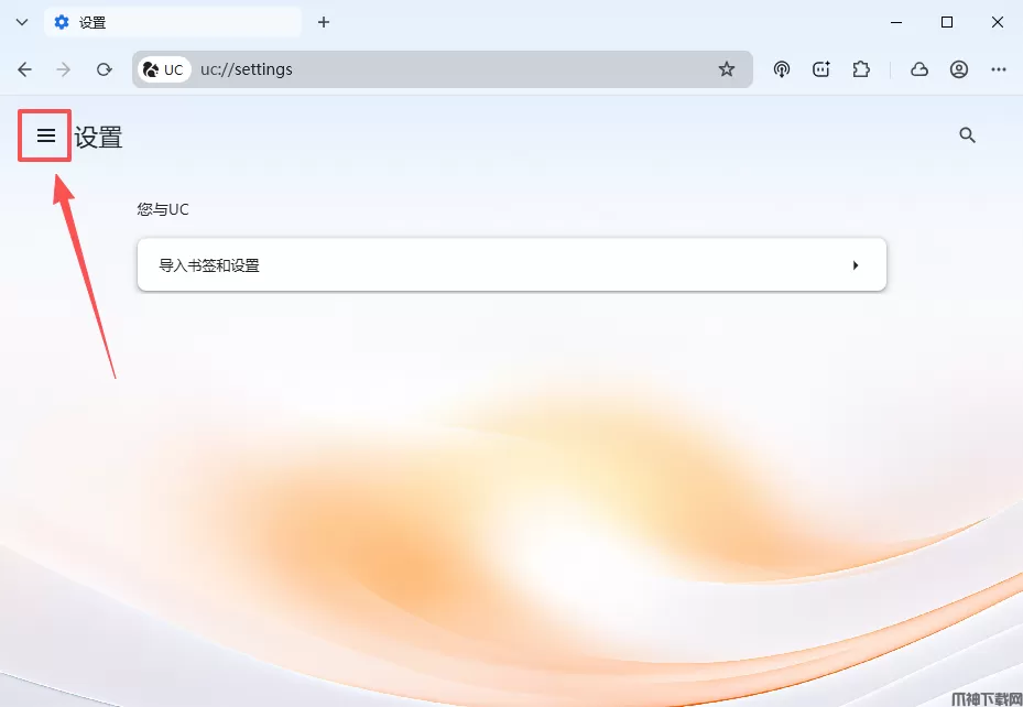 1、电脑UC浏览器电脑版右上角的三个点,选择设置选项。