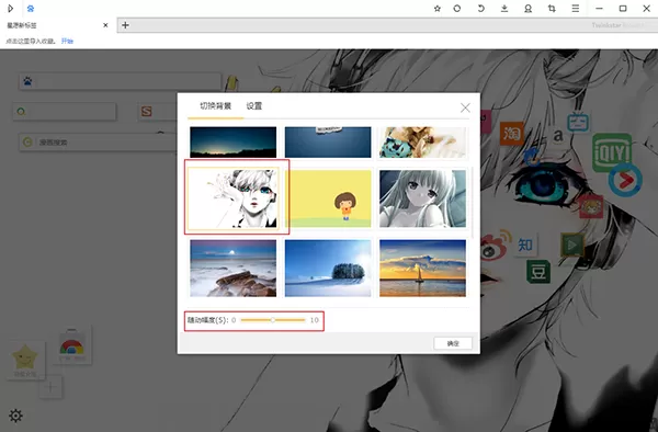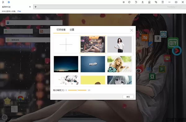 2、可以自定义浏览器背景和启动页的收藏夹图标。