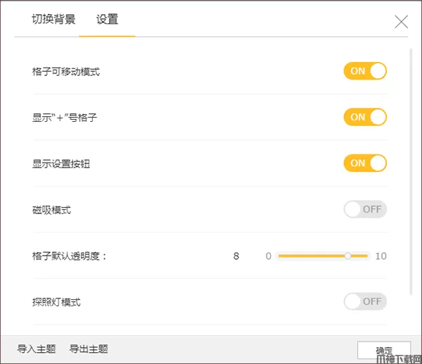 4、接着,用户在选项卡中点击“设置”按钮,您还可以设置探照灯模式、格子可移动、格子默认透明度等参数,从而获得最佳的界面效果;
