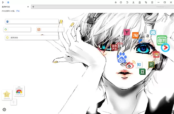 可以自定义浏览器背景和启动页的收藏夹图标,将收藏夹中的网址添加到启动页,可以自定义图标文字和颜色,支持透明设置,并且可以像桌面一样随意拖动,不遮挡背景图片。