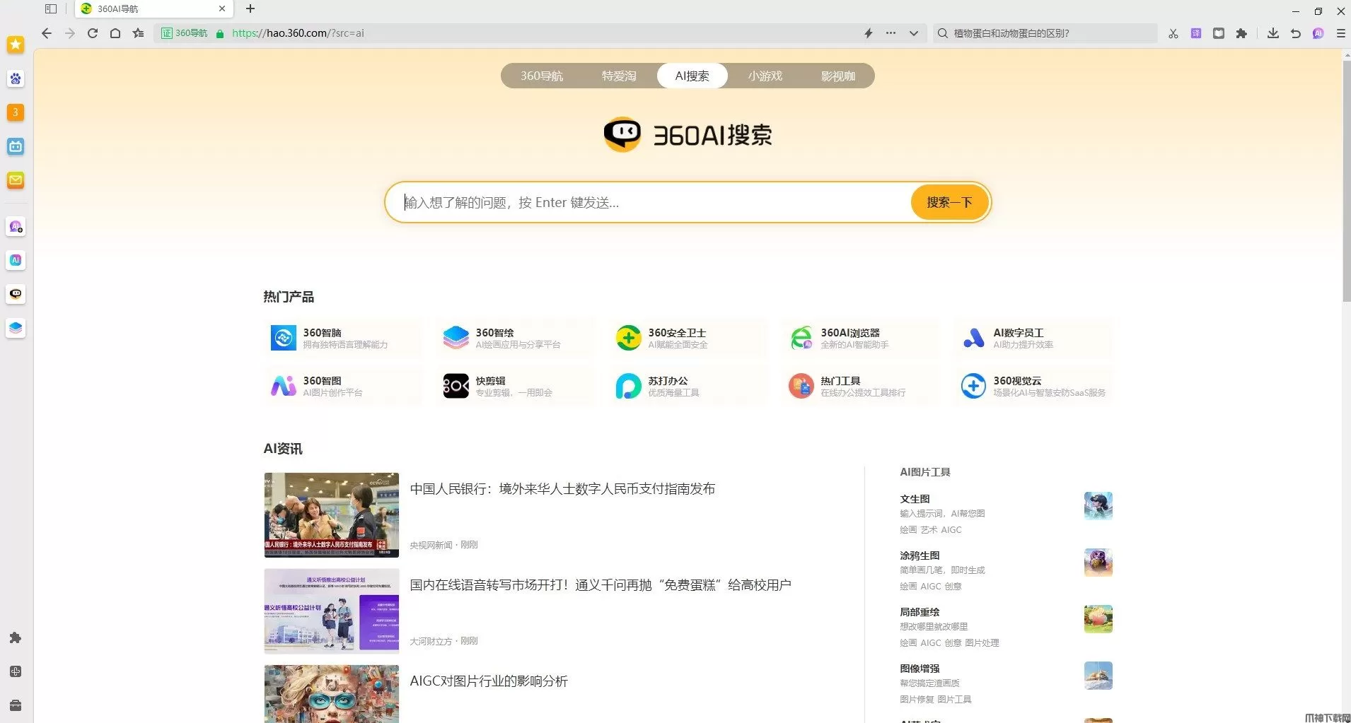 360AI浏览器官方版是360集团倾力打造的一款智能浏览器,融合了前沿的人工智能技术,旨在为用户提供高效便捷的网络浏览和信息获取体验。