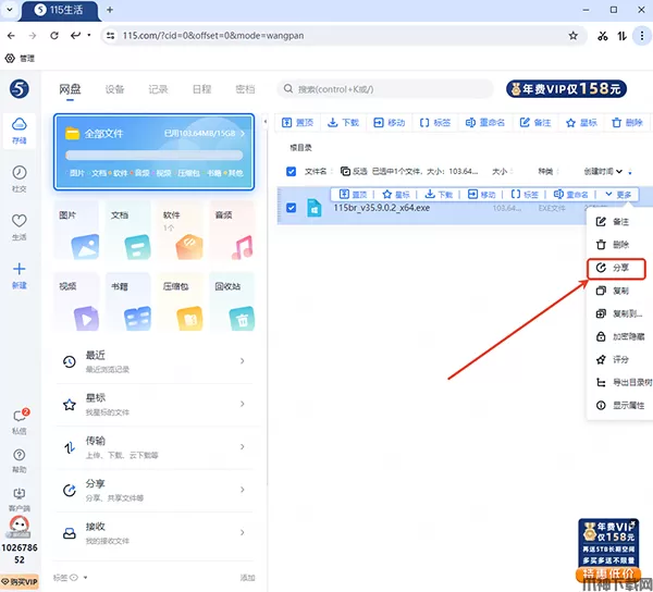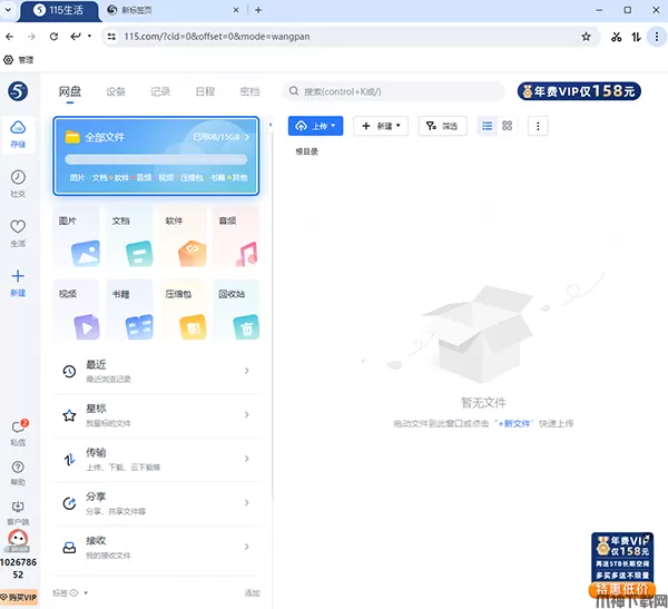 1、登录「115账号」,点击全部文件,先上传你要分享的文件。