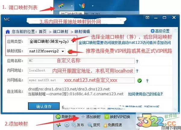 2,全端口映射模式穿透不限速,需要联机端同样安装使用nat123访问者。