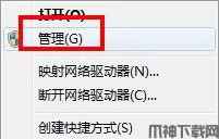 1)鼠标右键点击“计算机”—“管理”