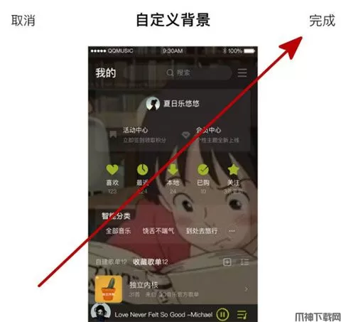 5、打开的相册中选择一张自己喜欢的图片,预览后点击“完成”,就可以自定义背景了!