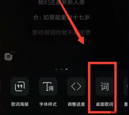 4、在词的选项种就有一个功能是桌面歌词,我们点击一下可以开打歌词,旁边还有歌词的其他设置哦。