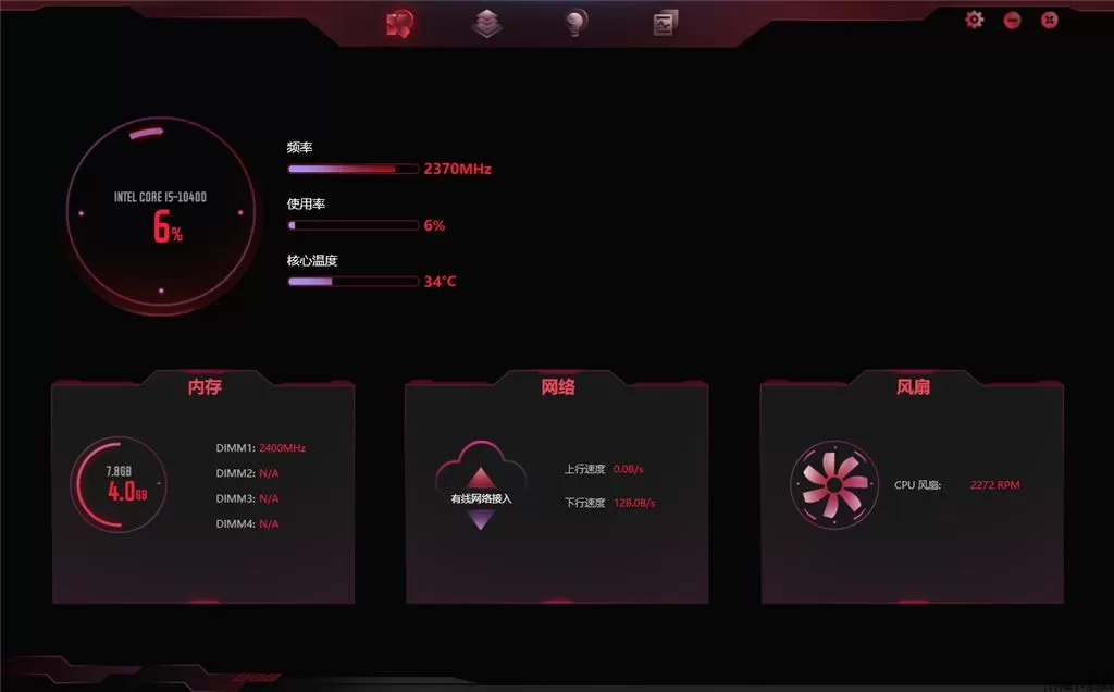 4、监控界面,可以在这里显示内存、风扇、CPU等硬件的运行数据。