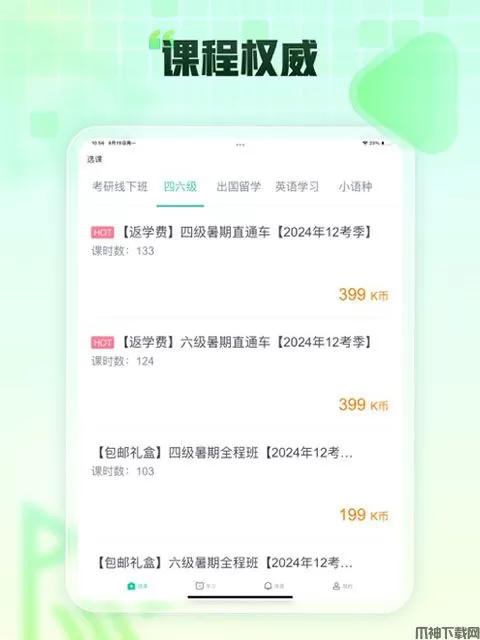 1、在线直播课:与老师、同学实时互动,解答、讨论课程难题;上课视频可缓存,反复观看回放与笔记;