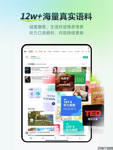 四六级、托福、雅思,我们精选了历年真题对你进行强化训练,即使只有一分钟也可以快速开始练习。