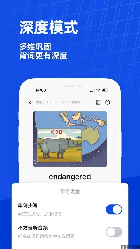 6、一个单词一张图,利用图形建立单词与真实环境的联系,打造最易记、最难忘的背单词软件。