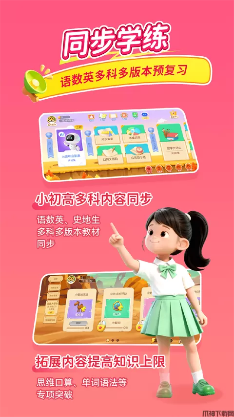3、基础工具:针对低年级,打好学习基础——英语自然拼读,双语生字点读,各年级口算精练,提升基础学力;