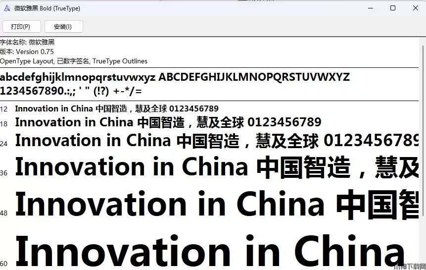 微软雅黑bold(粗体)是一款全面支持ClearType技术的字体。