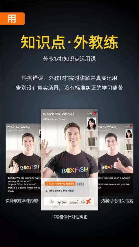 BOXFiSH盒子鱼英语ipad版的在线课堂不仅彻底超越了视频聊天为主的传统在线教育,更因为其拥有最优秀的中外教、一对一的良好互动和最先进的课程体系,学习效果更是远远超越了传统培训。