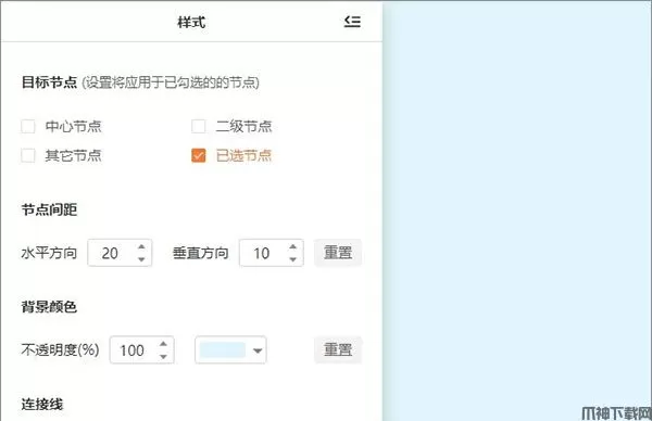 6、点击左侧 『 样式 』,可以更改不同节点对应的连接线颜色、边框大小、思维导图背景颜色等;