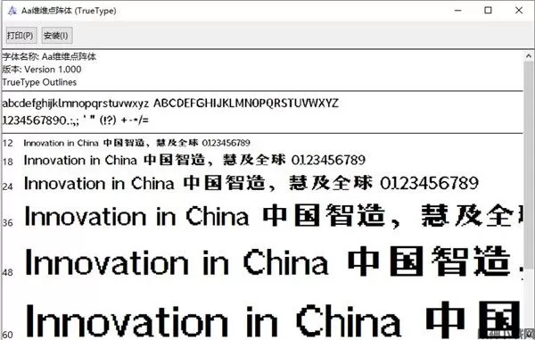 Aa维维点阵体是一款极具创意的中文字体,Aa维维点阵体以特定的设计元素代入汉字结构,丰富了字体产品风格。它以数码点阵的形式再现了早年间适配低分辨率的字体显示,复现了早期数码风格,迎合了各类商业设计需要。字体结构严谨、匀称,整体上效果十分出众得体。适于如个人网站、自媒体、个人PPT、H5、家装效果图、广告海报、个人作品发布会设计等一切合法场景,喜欢的朋友欢迎来本站下载收藏!