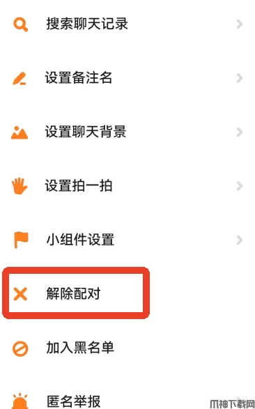 3、再点击红色字的【解除配对】,解除配对将同时取消喜欢。